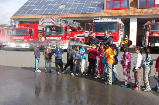 Weitgereiste Gäste konnte die Freiwillige Feuerwehr Bleicherode am gestrigen Tag auf dem Gelände des Gerätehauses in der Gütersloher Straße begrüßen. 17 Kinder und ihr Betreuer aus der Westsahara verbrachten einen schönen Vormittag mit den Kameraden der Freiwilligen Feuerwehr. Eine Feuerwehr gibt es in ihrer Heimat nicht. Um so mehr waren die Kinder von den roten Autos und der Technik der Feuerwehr begeistert. Besonderen Spaß machten die Fahrten mit einem Einsatzfahrzeug und vor allem das Spritzen mit Wasser.