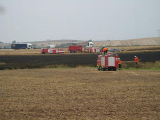 Großwechsungen. Am Dienstagnachmittag waren mehrere Südharzer Feuerwehren im Einsatz. Hier die Details von der Feuerwehr Bleicherode.     Gegen 16 Uhr hatte ein Mähdrescher auf einem Stoppelfeld in der Nähe der Gemeinde Großwechsungen Feuer gefangen. Dies wurde schnell bemerkt. Dennoch verbrannte ein Teil des Feldes. Menschen kamen nicht zu Schaden. Im Einsatz waren die Feuerwehren aus Großwechsungen, Kleinwechsungen, Großwerther, Kleinwerther, Windehausen, Nordhausen, Wipperdorf, Wolkramshausen und Bleicherode. TA 04.08.2015