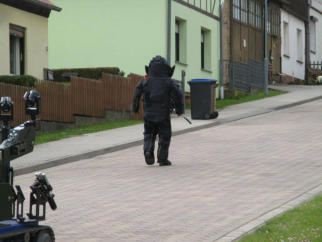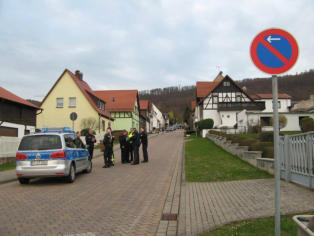 Spreng- oder Brandsatz unter Auto in Obergebra deponiert Obergebra (Kreis Nordhausen). Die Straße Tutenstieg in Obergebra, wird am Donnerstagmorgen komplett evakuiert: wegen eines Werkzeugkoffers, mit Klebeband verschlossen, daran zwei Drähte und ein Schalter. Dieser liegt auf der Straße vor einem Wohnhaus – genau an jener Stelle, wo Herta Köberichs Nachbarin ihr Auto geparkt hatte. „Ich hab‘ gerade die Rollos hochgezogen, da stand die Polizei vor meinem Fenster.“ Herta Köberich (87) hat noch nicht gefrühstückt, da muss sie aus ihrem Haus: In Kittelschürze, darüber eine Jacke gezogen, lässt sie sich von der Polizei ins Dorfgemeinschaftshaus bringen. Ihre Straße, der Tutenstieg in Obergebra, wird am Donnerstagmorgen komplett evakuiert: wegen eines Werkzeugkoffers, mit Klebeband verschlossen, daran zwei Drähte und ein Schalter. Dieser liegt auf der Straße vor einem Wohnhaus – genau an jener Stelle, wo Herta Köberichs Nachbarin ihr Auto geparkt hatte. Nachdem sie weggefahren war, hatte ihr Schwager den schwarzen Koffer kurz vor 7 Uhr entdeckt. Es müsse, so die Polizei später, davon ausgegangen werden, dass der Koffer nachts von Unbekannten unter dem Auto platziert wurde. Wegen Sprengstoffverdachts leitet die Nordhäuser Polizei sofort einen Großeinsatz ein, ruft Spezialisten des Landeskriminalamts Erfurt zu Hilfe, beginnt mit der Evakuierung. Einige Anwohner kommen bei Verwandten oder Bekannten unter; 13, vorwiegend ältere Menschen werden auch mithilfe der Bleicheröder Feuerwehr bis 9 Uhr ins Dorfgemeinschaftshaus gebracht. Gemeindearbeiter Uli Schäfer serviert dort Kaffee und belegte Brötchen, während Ortsbürgermeister Frank Saalbach und Bleicherodes Bürgermeister Frank Rostek (CDU) am Ort des Einsatzes sind. Letzterer erinnert sich an ähnlich bange Momente im Herbst 2011, als zwei Züge im Bleicheröder Bahnhof miteinander kollidierten, einer voller Chemikalien. „Wollen wir hoffen, dass es ein schlechter Scherz ist“, sagt Saalbach. Noch weiß er nicht, dass er sich täuscht. Die Sprengstoffexperten treffen 9.20 Uhr am Tutenstieg ein, die Landesstraße wird für den Verkehr gesperrt. Einige Minuten später rollt ein ferngesteuerter Roboter übers Betonpflaster der Straße gen Koffer. Dank Kamera kann dieser den Kofferinhalt erkennen, via Funk werden die Bilder in den Einsatz-Lkw übertragen. „Was, wenn etwas drin ist, das nur nicht hochgegangen ist?“, fragt der Ortsbürgermeister. Nicht nur seine Nerven sind angespannt. Ein in Alufolie verpackter Gegenstand lässt aufhorchen. Die Experten entschließen sich, den Koffer mit einer Wasserkanone vom Roboter aus zu beschießen und damit unschädlich zu machen. 9.53 Uhr ist ein dumpfer Knall zu hören: „Die Gefahr, dass der Inhalt unkontrolliert explodiert, wurde so gebannt“, erklärt Polizeisprecher Thomas Soszynski. Ein LKA-Beamter im Spezialschutzanzug begutachtet den Koffer vor Ort näher, gegen 10.10 Uhr wird Entwarnung gegeben, die Straßensperrung aufgehoben. Die Nordhäuser Kriminalbeamten beginnen mit ihren Ermittlungen, auch ein Spürhund aus Suhl wird angefordert. Mit Erleichterung nehmen die Leute im Dorfgemeinschaftshaus zur Kenntnis, dass die Gefahr gebannt ist. „Es wird aber noch zweieinhalb, drei Stunden dauern, bis Sie in ihre Häuser zurückkönnen“, bittet Bürgermeister Rostek um Verständnis für die Ermittlungen. „Hilft alles nichts“, zuckt Herta Köberich mit den Schultern. Neben ihr sitzt Barbara Eritt, auf dem Schoß ihre zwei Jahre alte Katze Susi. Von Unruhe keine Spur – im Gegensatz zu einem Mitarbeiter einer Großwechsunger Baufirma: Am Tutenstieg, erzählt er, wollte er heute die Baugrube für ein neues Haus ausheben. „Dann kam die Polizei, wir mussten sofort weg, mussten unseren großen Lkw stehen lassen.“ Zu Recht, die Lage war ernst, wird am Nachmittag klar: Die kriminaltechnische Untersuchung ergab, dass der Bausatz im Koffer tatsächlich zündfähig war. „Warum es nicht zur geplanten Zündung kam, konnte bisher noch nicht festgestellt werden“, teilte Soszynski am Nachmittag mit. Nun ermittelt die Polizei zu den Hintergründen der Tat. Ausländerfeindlichkeit oder ein politischer Hintergrund werden als Motiv zurzeit ausgeschlossen. Zeugen, die in der Nacht oder am frühen Donnerstagmorgen im Tutenstieg Verdächtiges beobachtet haben, sollten sich melden unter Tel. 03631/96-0.