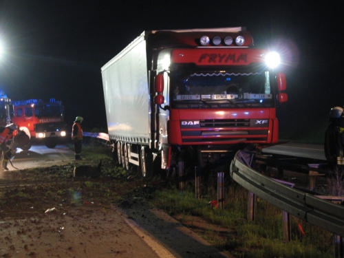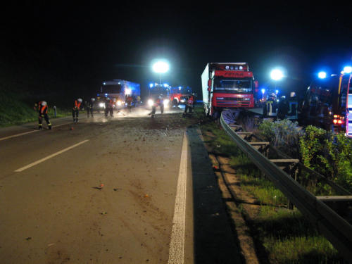 Bleicherode (Kreis Nordhausen). Ein geplatzter Lkw-Reifen hat am Donnerstag auf der A38 bei Bleicherode für Behinderungen gesorgt. Seit dem frühen Morgen war die Autobahn zwischen Bleicherode und Großwechsungen in Richtung Leipzig gesperrt, wie die Autobahnpolizei in Hermsdorf mitteilte. Durch einen Reifenplatzer war ein Sattelzug von der Fahrbahn abgekommen. Er durchbrach die Mittelleitplanke und walzte diese auf einer Strecke von 100 Metern nieder. Die Fahrbahn in Richtung Göttingen wurde dabei so stark verschmutzt, dass der Verkehr nur noch über einen Fahrstreifen rollen konnte. Der 36-jährige Fahrer blieb unverletzt. Die Bergungsarbeiten sollten laut Autobahnpolizei noch den Donnerstagvormittag über andauern. Unter anderem müssten 24 Tonnen Granulat auf einen anderen Laster verladen werden, um den Sattelzug zu bergen. Nach ersten Schätzungen der Polizei entstand ein Sachschaden von 40.000 Euro. Im Einsatz waren die Feuerwehren aus Bleicherode, Großwechsungen und Nordhausen. TA 12.05.16