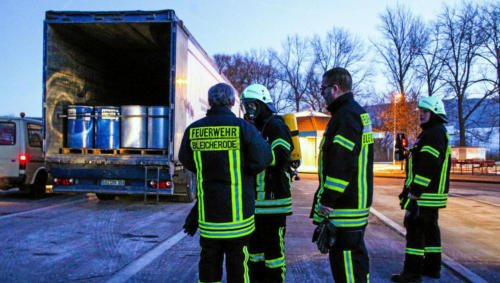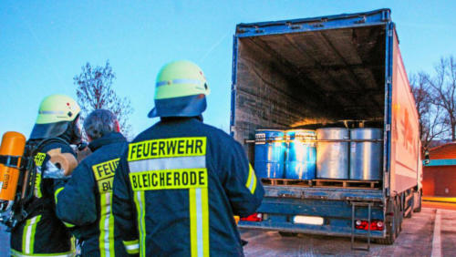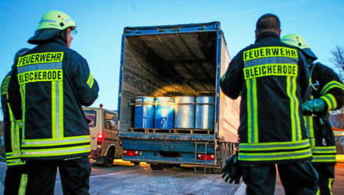 Bleicherode. Ein undichtes Fass in einem Gefahrgut-Transporter sorgte am Freitag für einen Einsatz der Bleicheröder Feuerwehr. Gegen 16 Uhr fiel das Fahrzeug eines deutschen Unternehmens bei einer Lkw-Kontrolle auf der A 38 auf und wurde von der Polizei auf den Parkplatz Galgenberg in Richtung Leipzig geleitet. Dort stießen die Kontrolleure auf ein undichtes Fass, aus dem laut Autobahnpolizei Flüssigkeit (eine Nickel-Verbindung) austrat. Die Kameraden der Bleicheröder Wehr dichteten das Fass ab. Anschließend konnte der Lkw seine Fahrt fortsetzen. Den Lkw-Fahrer erwartet laut Polizeiangaben nun ein Bußgeld. TA  20.01.17