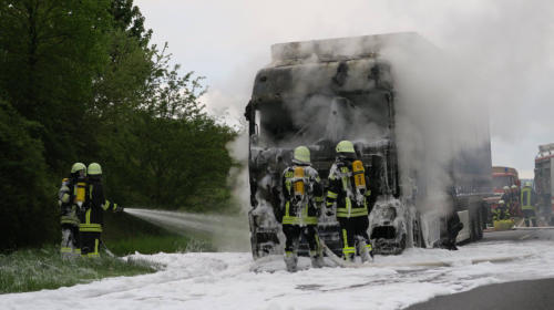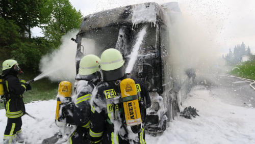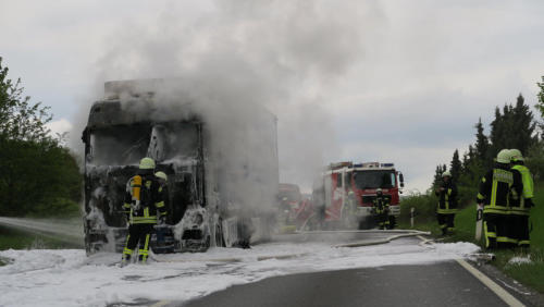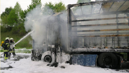 Am Freitagnachmittag wurden die Bleicheröder sowie zwei andere Freiwillige Feuerwehren zu einem Lkw-Brand auf den Zubringer zur A 38 gerufen... Der Alarm wurde gegen 16.15 Uhr ausgelöst. Die eingesetzten Wehren aus Bleicherode, Obergebra und Sollstedt konnten das völlige Ausbrennen der Zugmaschine und großer Teile des Aufliegers nicht mehr verhindern. Der Lkw-Fahrer konnte sich glücklicherweise rechtzeitig in Sicherheit bringen. Der Schaden an dem in Rumänien zugelassenen Brummi beläuft sich ersten Angaben zufolge auf mehr als 50.000 Euro. NNZ 12.05.2017