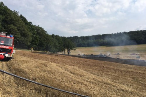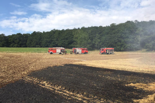 Waldbrand bei Hamma verhindert Hamma. Dem Einsatz der Feuerwehren aus dem Südharz und speziell der Goldenen Aue ist es zu verdanken, dass ein Flächenbrand auf einem abgeernteten Feld drei Kilometer südlich von Hamma sich nicht auf den angrenzenden Wald ausbreitete. Unermüdlich bekämpften 76 Einsatzkräfte der Freiwilligen Feuerwehren aus Hamma, Auleben, Heringen, Görsbach, Uthleben, Urbach, Windehausen, Wolkramshausen, Wernrode, Niedersachswerfen und Bleicherode sowie von der Berufsfeuerwehr Nordhausen mit sogenannten Feuerpatschen und Wasser den Brand und verhinderten so, dass sich die Flammen weiter in Richtung Norden fressen konnten. Zudem beteiligten sich sechs Landwirte bei der Brandbekämpfung, indem sie Strohballen mit Traktoren von dem Brandherd entfernten und mit einem Pflug eine Schneise in den Boden zogen. Ursache des Brandes über sechs Hektar war eine Strohballenpresse, die während der Arbeit Feuer fing. Um 15:30 Uhr ging die Alarmierung bei der Feuerwehr ein. Der Sachschaden wird auf 35 000 Euro geschätzt. TA 09.08.2017