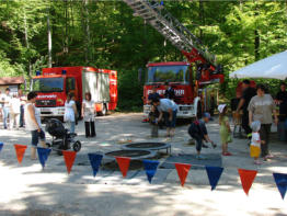 Pfingsttreffen an den Drei BänkenWie angekündigt - auch in diesem Jahr war das Pfingsttreffen der Feuerwehr Bleicherode am Pfingstsonntag auf dem Parkplatz an den "Drei Bänken" in der Talstraße ein voller Erfolg. Bei wunderschönem Sommerwetter nutzten viele Wanderer das Angebot, "ihre" Feuerwehr kennenzulernen, Fragen zu stellen, Einsatztechnik zu betrachten (und anzufassen) und die eine oder andere Bratwurst vom Grill zu essen. Auch dem durstigen Wanderer konnte geholfen werden.Auch im kommenden Jahr wird die nun schon traditionelle Veranstaltung am Pfingstsonntag stattfinden. Wer sich bis dahin für die Arbeit der Feuerwehr interessiert wenn sie gerade kein Pfingsttreffen ausrichtet, der ist herzlich eingeladen, freitags ab 19.00 Uhr im Gerätehaus in der Gütersloher Straße vorbei- oder besser hereinzuschauen. Bleicherode den 11.05.2008