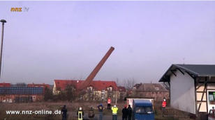 Bleicherode. Ein Knall, dann dauerte es nur wenige Sekunden: Der knapp 30 Meter hohe Schornstein legte sich