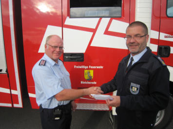 Einer guten Tradition folgend übergab Stadtbrandmeister Burkhard Keil im Auftrag des Bürgermeisters dem Jugendfeuerwehrwart der Freiwilligen Feuerwehr Bleicherode, Kameraden Pavlitschek, Dauerkarten für die diesjährige Freibadsaison. Die Karten sind für die 29 Angehörigen der Jugendfeuerwehren Bleicherode und Obergebra bestimmt und ein Dankeschön der Stadt für die geleistete gute Arbeit. Die Tätigkeit in der Jugendfeuerwehr stellt nicht nur eine sinnvolle Freizeitgestaltung dar. Die Kinder und Jugendlichen lernen vor der Aufnahme in den aktiven Einsatzdienst das ABC der Feuerwehrarbeit. Nähere Informationen zur Jugendarbeit in den Freiwilligen Feuerwehren der Stadt Bleicherode gibt es im Internet unter www.feuerwehr-bleicherode.de oder beim Ordnungsamt der Stadt, Telefon 036338/35328. Samstags ab 10.oo Uhr kann man sich die Arbeit in der Jugendfeuerwehr sozusagen "live" im Gerätehaus in der Gütersloher Straße ansehen.