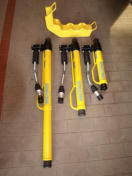 Hebekissen:Pneumatische Hebekissen sind besonders dafür geeignet, größere Lasten schnell und einfach zu heben. Die Hebekissen sind als Hoch- und Niederdruckvariante im Einsatz. Beide Varianten werden bei der technischen Hilfeleistung zur Rettung und Bergung als schnelles Gerät eingesetzt, um Menschen aus Notlagen zu befreien und Sachschäden zu begrenzen.